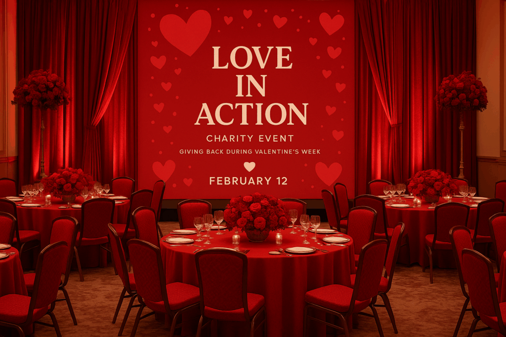 We love partnering with organizations to host charity galas, volunteer drives, or donation dinners that embody giving back during Valentine’s week.